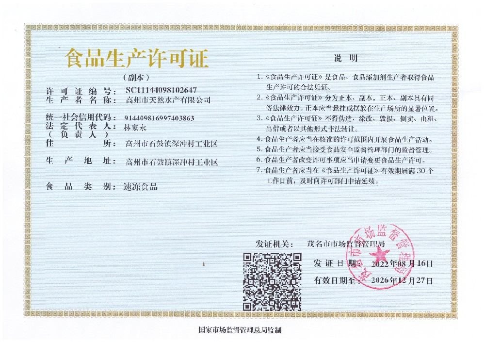 高州市天然水產有限公司是一家集養殖、加工生產、冷藏、出口貿易為一體的出口型企業。  公司創建于2010年,總投資6000多萬元,占地面積27000多平方米,生產車間、辦公樓、宿舍樓等建筑面積11200平方米,擁有羅非魚加工生產線5條,速凍庫6間,冷庫容積10000多立方米,每天可加工水產品90多噸,是我市農業龍頭企業。